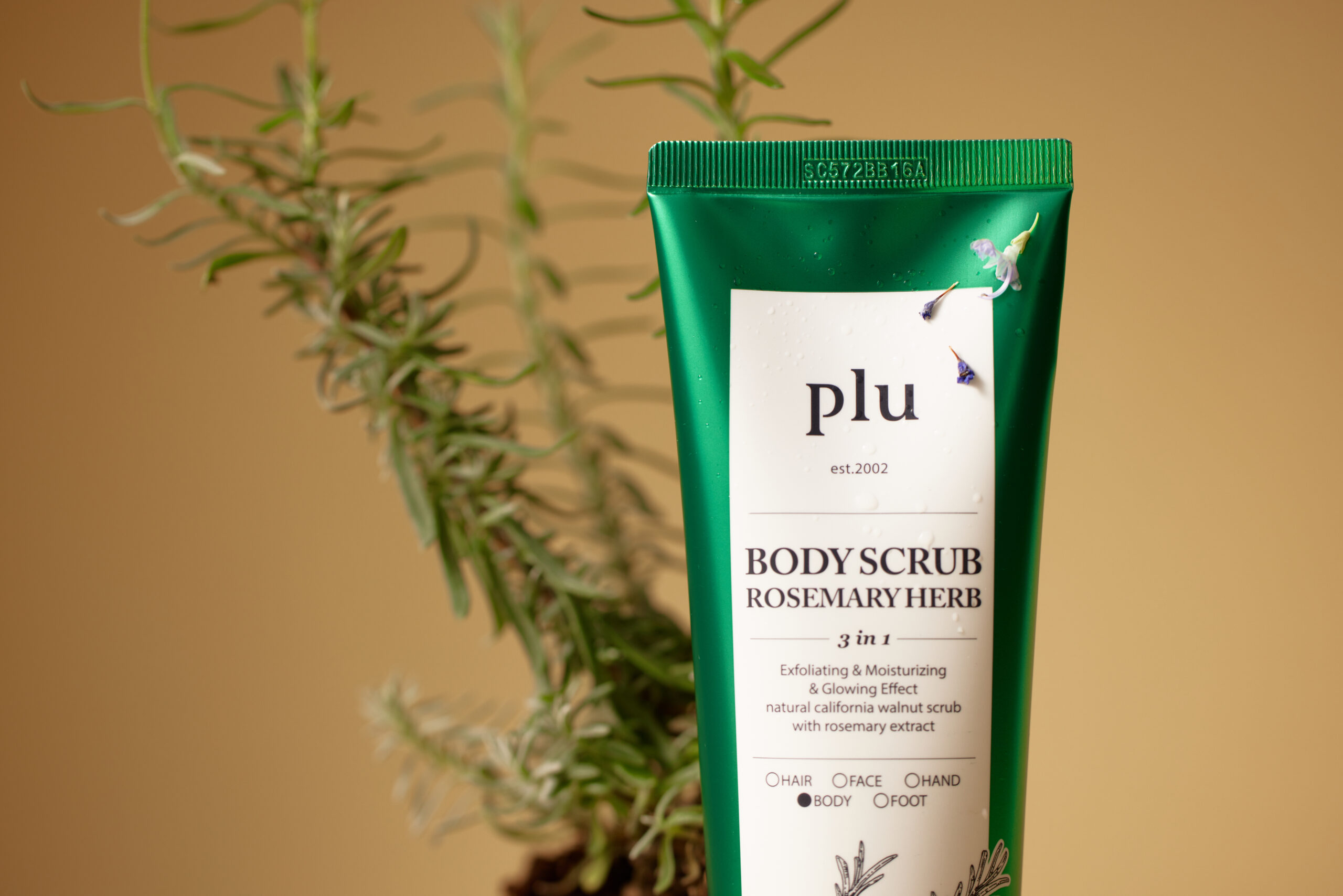 カリフォルニア産クルミ殻粒とローズマリー抽出物、マトリカリアの花/葉抽出物、バラの花抽出物が含まれており、肌をやさしく滑らかに管理するボディ専用スクラブ。